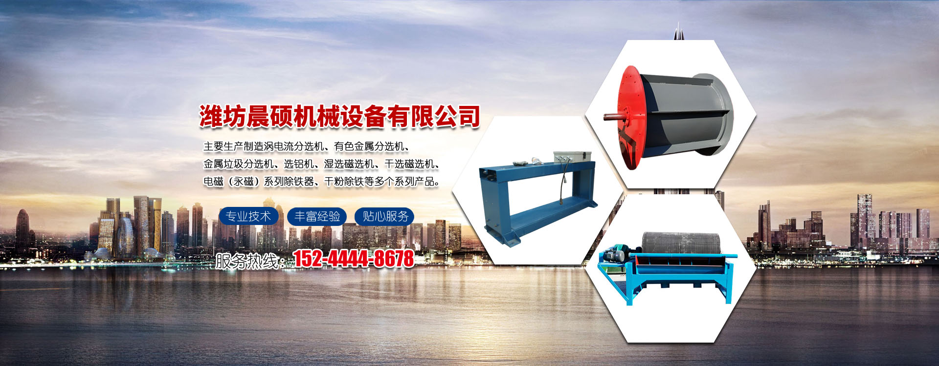主要生產(chǎn)制造渦電流分選機(jī)、有色金屬分選機(jī)、金屬垃圾分選機(jī)、選鋁機(jī)、濕選磁選機(jī)、干選磁選機(jī)、電磁(永磁)系列除鐵器、干粉除鐵等多個(gè)系列產(chǎn)品。